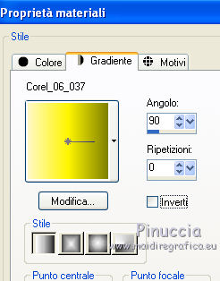 Passa il colore di primo piano a Gradiente e seleziona il gradiente Corel_06_037, con i seguenti settaggi.