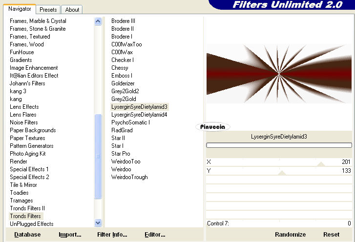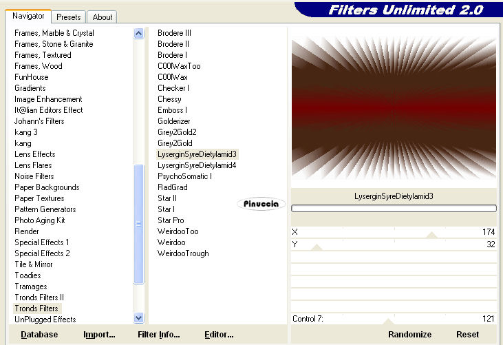 Ripeti Effetti>Plugins>Tronds filter - LyserginSyreDietylamid3 con i settaggi standard.