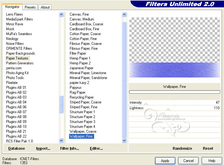 Effetti>Plugins>Filters Unlimited 2.0 - Paper Textures - Wallpaper fine.