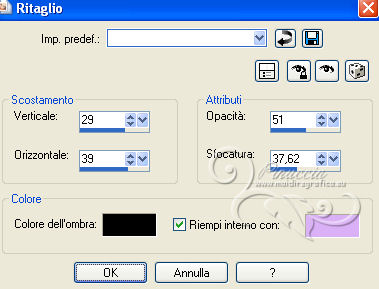 Effetti>Effetti 3D>Sfalsa ombra, con i settaggi precedenti.