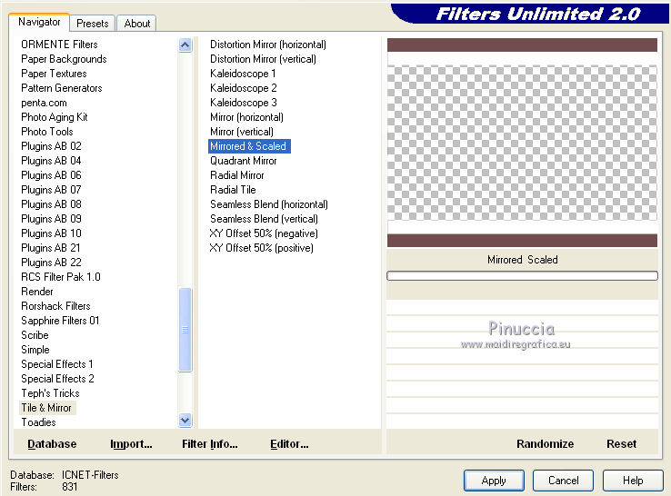 Effetti>Plugins>Filters Unlimited - Tile and Mirror - Mirror and Scaled.