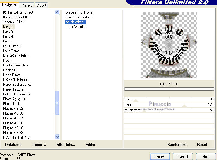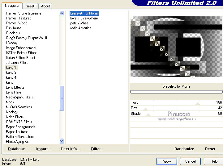 Kang si può usare da solo o importandolo in Filters Unlimited. A volte, il risultato è diverso, ma questo è possibile riscontrarlo volta per volta