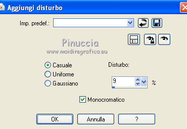 Regola>Aggiungi/Rimuovi disturbo>Aggiungi disturbo, con i settaggi precedenti.