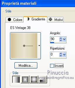 2. Passa il colore di primo piano a Gradiente e seleziona il gradiente ES Vintage 38, con i seguenti settaggi.
