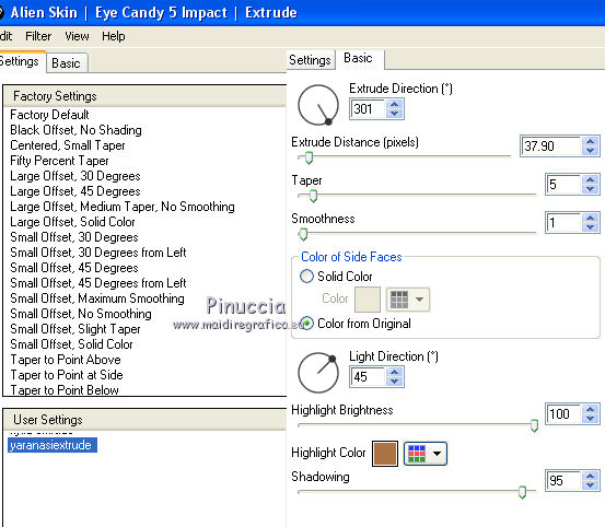 3. Effetti>Plugins>Alien Skin eye Candy 5 Impact - Extrude,