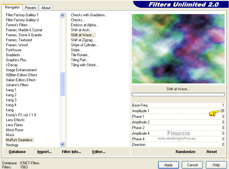 Effetti>Plugins>Filters Unlimited 2.0 - Mura's Seamless - Shift at wave.