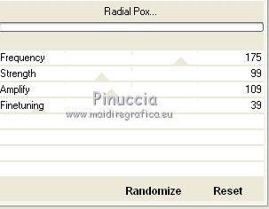 Effetti>Plugins>Filters Unlimited 2.0 - VM Distortion - Radial Pox, con i settaggi standard.