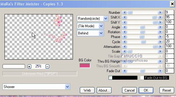 Close the foreground color and set your background color to the light color #f0ccdb.