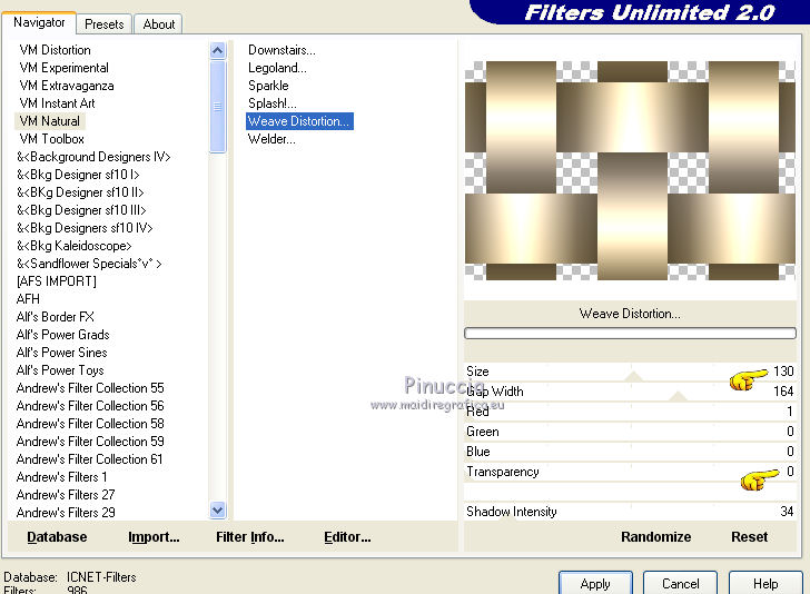 Effets>Modules Externes>Filters Unlimited 2.0 - VM Natural - Weave Distortion