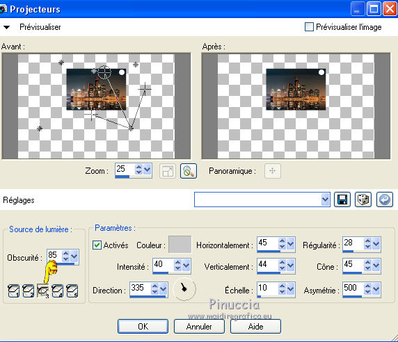 Enfin, jouer avec les settages des autres projecteurs sur la feneˆtre "Avant",
