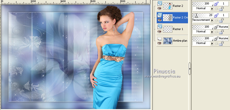 Placer le calque en mode Recouvrement, et réduire l'opacité à 20%.
