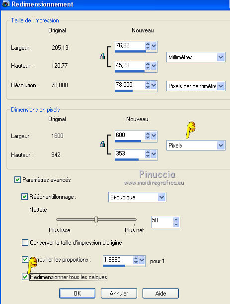 Image>Redimensionner - à 600 pixels de largeur, redimensionner tous les calques coché.
