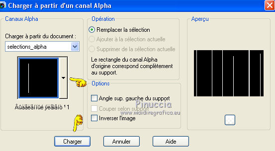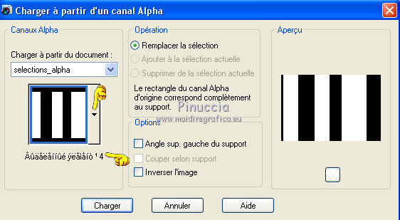 Sélections>Charger/Enregistrer une sélection>Charger à partir d'un canal alpha.