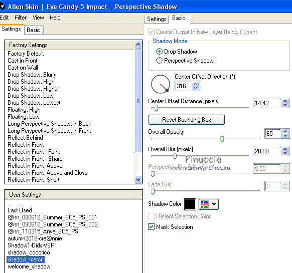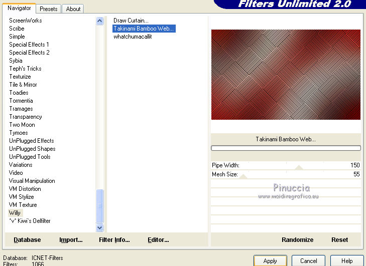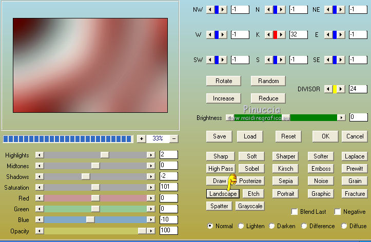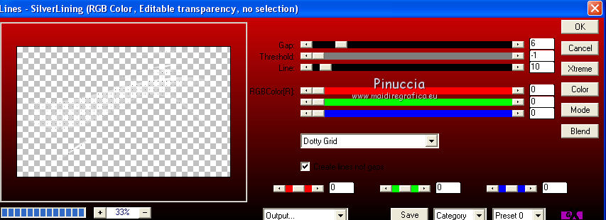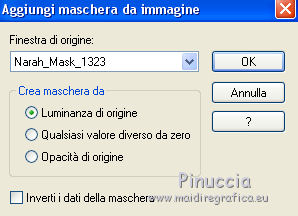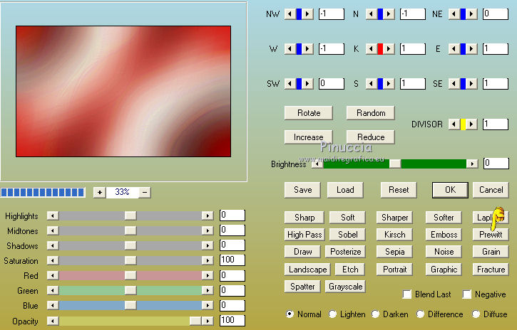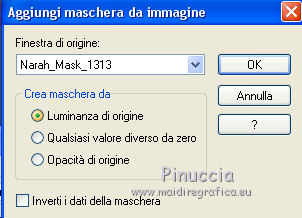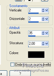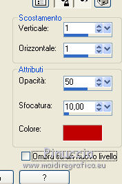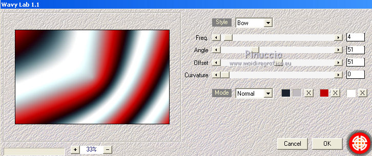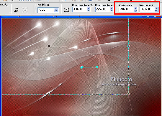 qui puoi trovare qualche risposta ai tuoi dubbi. Se l'argomento che ti interessa non è presente, ti prego di segnalarmelo. Questo tutorial è una creazione di Saturnella e non può essere copiato su altri siti nè essere offerto per il download. Lo stesso vale per la mia traduzione. E' anche proibito togliere il watermark dal materiale; rispettiamo il lavoro dei creatori di tubes, senza i quali non potremmo creare tutorials. Per tradurre questo tutorial, creato con Corel2018, ho usato CorelX, ma può essere eseguito anche con le altre versioni di PSP. Dalla versione X4, il comando Immagine>Rifletti è stato sostituito con Immagine>Capovolgi in orizzontale, e il comando Immagine>Capovolgi con Immagine>Capovolgi in verticale. Nelle versioni X5 e X6, le funzioni sono state migliorate rendendo disponibile il menu Oggetti. Nel nuovo X7 sono tornati i comandi Immagine>Rifletti e Immagine>Capovolgi, ma con nuove funzioni. Vedi la scheda sull'argomento qui Occorrente: Materiale qui Grazie: per le maschere Narah. Il resto del materiale è di Saturnella. (in questa pagina trovi i links ai loro siti). Filtri in caso di dubbi, ricorda di consultare la mia sezione filtri qui Filters Unlimited 2.0 qui Mehdi - Wavy Lab 1.1 qui AAA Filters - Custom qui AP 01 Innovations - Lines SilverLining qui Graphics Plus - Quick Tile I qui Willy qui Alien Skin Eye Candy 5 Impact - Perspective Shadow qui I filtri Graphics Plus e Willy si possono usare da soli o importati in Filters Unlimited (come fare vedi qui) Se un filtro fornito appare con questa icona ![]() non esitare a cambiare modalità di miscelatura e opacità secondo i colori utilizzati. se non vuoi sentire la musica, premi il tasto ESC Metti il preset Cliccando sul file una o due volte (a seconda delle tue impostazioni), automaticamente il preset si installerà nella cartella corretta. perchè uno o due clic vedi qui Se preferisci, puoi importare direttamente il preset nel corso del tutorial Come fare vedi la scheda del filtro Eye Candy qui Apri le maschere in PSP e minimizzale con il resto del materiale. Colori utilizzati ![]() Imposta il colore di primo piano con il colore chiaro #c0bbbf, e il colore di sfondo con il colore scuro #1c222e. ![]() 1. Apri una nuova immagine trasparente 900 x 550 pixels. Effetti>Plugins>Mehdi - Wavy Lab 1.1 questo filtro crea gradienti con i colori della tua paletta: il primo è il colore di sfondo, il secondo il colore di primo piano, cambia gli ultimi due colori creati dal filtro: il terzo con #c00000 e il quarto con il colore bianco #ffffff. ![]() 2. Regola>Sfocatura>Sfocatura gaussiana - raggio 100. ![]() 3. Effetti>Plugins>AAA Filters - Custom - clicca su Landscape e ok. ![]() 4. Livelli>Duplica. Immagine>Rifletti. Immagine>Capovolgi. Cambia la modalità di miscelatura di questo livello in Luce netta. Livelli>Unisci>Unisci visibile. 5. Effetti>Plugins>AAA Filters - Custom - clicca su Prewitt e ok. ![]() 6. Effetti>Plugins>Filters Unlimited 2.0 - Willy - Takinami Bamboo Web, con i settaggi standard. ![]() 7. Livelli>Nuovo livello raster. Imposta il colore di primo piano con il colore bianco. Riempi il livello con il colore bianco.Livelli>Nuovo livello maschera>Da immagine. Apri il menu sotto la finestra di origine e vedrai la lista dei files aperti. Seleziona la maschera Narah_Mask_1313. ![]() Regola>Messa a fuoco>Accentua messa a fuoco Livelli>Unisci>Unisci gruppo. 8. Effetti>Plugins>AP 01 Innovations - Lines SilverLining. ![]() 9. Effetti>Effetti 3D>Sfalsa ombra. ![]() 10. Livelli>Nuovo livello raster. Riempi il livello con il colore bianco.Livelli>Nuovo livello maschera>Da immagine. Apri il menu sotto la finestra di origine e seleziona la maschera Narah_Mask_1323. ![]() Effetti>Effetti di bordo>Aumenta. Livelli>Unisci>Unisci gruppo. 11. Effetti>Effetti 3D>Sfalsa ombra, colore 3 #c00000. ![]() Cambia la modalità di miscelatura di questo livello in Luminanza (esistente). 12. Livelli>Nuovo livello raster. Riempi il livello con il colore bianco.Livelli>Nuovo livello maschera>Da immagine. Apri il menu sotto la finestra di origine e seleziona la maschera Narah_Mask_1177. ![]() Livelli>Unisci>Unisci gruppo. Premi sulla tastiera il tasto K per attivare lo strumento Puntatore ![]() e imposta Posizione X: -187,00 e Posizione Y: -121,00. ![]() Tasto M per deselezionare lo strumento. 14. Attiva il livello di sfondo. Apri il tube del paesaggio olympia_paris_salle e vai a Modifica>Copia. Torna al tuo lavoro e vai a Modifica>Incolla come nuovo livello. Tasto K per attivare lo strumento Puntatore ![]() e imposta Posizione X: 51,00 e Posizione Y: -42,00. ![]() Tasto M per deselezionare lo strumento. Abbassa l'opacità di questo livello al 46% 15. Attiva il livello superiore. Apri il tube del sipario di Guismo e vai a Modifica>Copia. Torna al tuo lavoro e vai a Modifica>Incolla come nuovo livello. Immagine>Ridimensiona, all'80%, tutti i livelli non selezionato. 16. Effetti>Effetti 3D>Sfalsa ombra. ![]() 17. Apri il tube Aznavour e vai a Modifica>Copia. Torna al tuo lavoro e vai a Modifica>Incolla come nuovo livello. Immagine>Ridimensiona, all'80%, tutti i livelli non selezionato. 18. Effetti>Plugins>Alien Skin Eye Candy 5 Impact - Perspective Shadow. Seleziona il preset shadow_merci e ok. ![]() Regola>Messa a fuoco>Metti a fuoco. 19. Attiva il livello di sfondo. Modifica>Copia. 20. Immagine>Aggiungi bordatura, 1 pixel, simmetriche, colore 3 #c000000. Immagine>Aggiungi bordatura, 3 pixels, simmetriche, colore bianco. Immagine>Aggiungi bordatura, 1 pixel, simmetriche, colore 3. Selezione>Seleziona tutto. Immagine>Aggiungi bordatura, 25 pixels, simmetriche, colore bianco. Selezione>Inverti. Modifica>Incolla nella selezione. 21. Effetti>Plugins>Willy - Takinami bamboo Web, con i settaggi standard. Selezione>Inverti. Effetti>Effetti 3D>Sfalsa ombra. ![]() Selezione>Deseleziona. 22. Immagine>Aggiungi bordatura, 1 pixel, simmetriche, colore 3. Immagine>Aggiungi bordatura, 3 pixels, simmetriche, colore bianco. Immagine>Aggiungi bordatura, 1