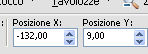 e imposta Posizione X: -132,00 e Posizione Y: 9,00.