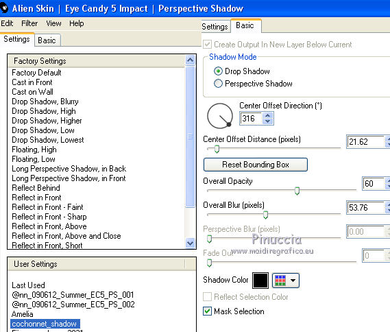 12. Effetti>Plugins>Alien Skin Eye Candy 5 Impact - Perspective Shadow, con i settaggi precedenti.