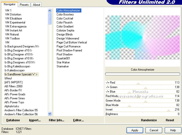 8. Effetti>Plugins>Filters Unlimited 2.0 - Sandflower special - Color Atmospherizer.