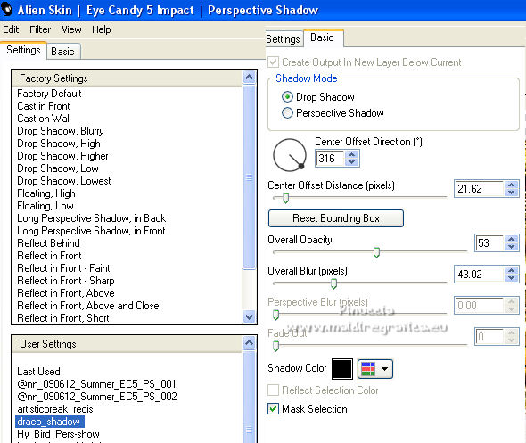 14. Effetti>Plugins>Alien Skin Eye Candy 5 Impact - Perspective Shadow.