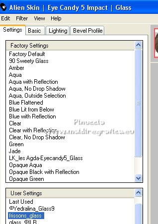 Effetti>Plugins>Alien Skin Eye Candy 5 Impact - Glass.