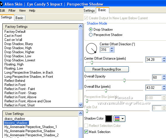13. Effetti>Plugins>Alien Skin Eye Candy 5 Impact - Perspective Shadow,