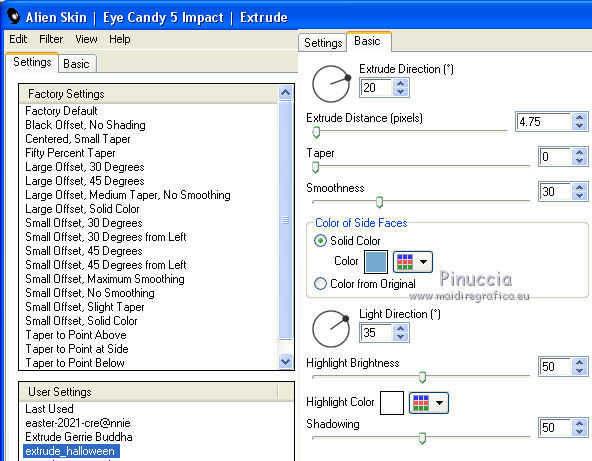 nella cartella del filtro Alien Skin Eye Candy 5 Impact>Settings>Extrude.