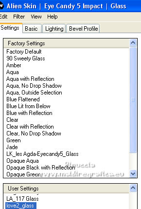 Effetti>Plugins>Alien Skin Eye Candy 5 Impact - Glass.