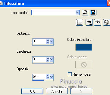 Effetti>Effetti di trama>Intessitura, con i settaggi precedenti, ma colore intessitura colore di primo piano.