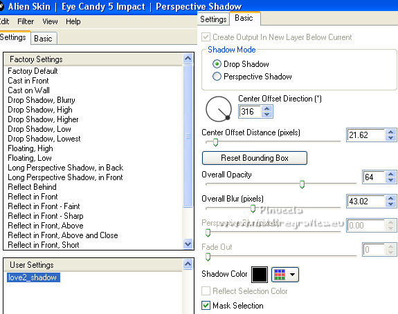Effetti>Plugins>Alien Skin Eye Candy 5 Impact - Perspective Shadow.