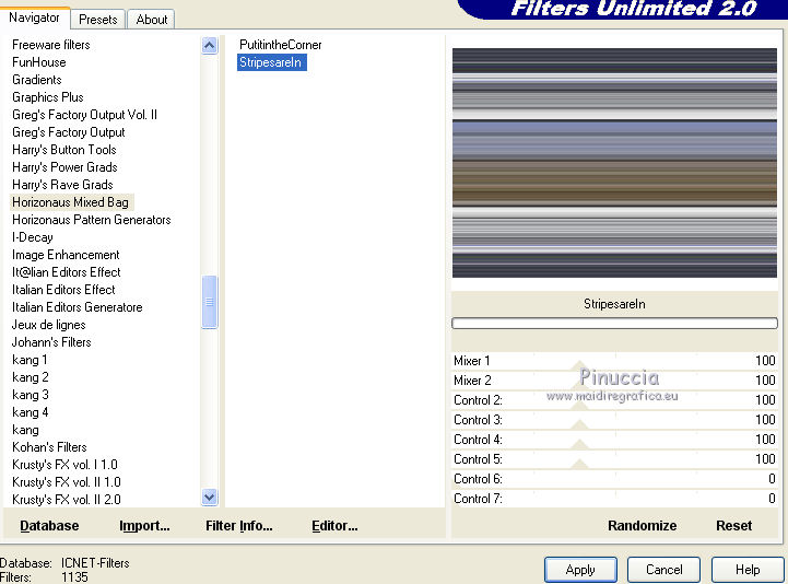 24. Effetti>Plugins>Filters Unlimited 2.0 - Horizonaus Mixed Bag - Stripesareln, con i settaggi standard.