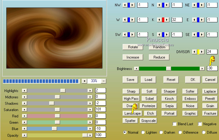 7. Effetti>Plugins>AAA Filters - Custom - Landscape, Brightness -30 e ok.