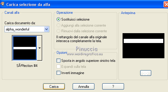 La copia, che sarà la base del tuo lavoro, non è vuota, ma contiene una selezione salvata sul canale alfa.
