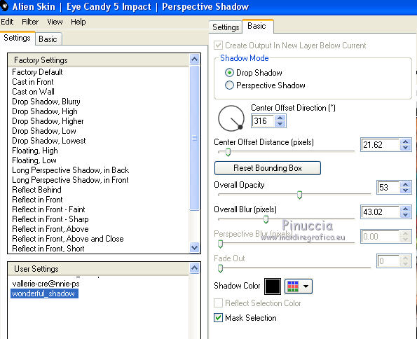 nelle cartelle del filtro Alien Skin Eye Candy 5 Impact>Settings>Shadow/Glass.