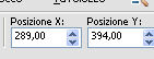 Imposta Posizione X: 289,00 e Posizione Y: 394,00.