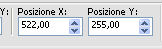 Imposta Posizione X: 522,00 e Posizione Y: 255,00.