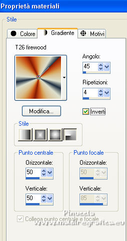 Passa il colore di primo piano a Gradiente e seleziona il gradiente T26-FireWood, stile Radiale.