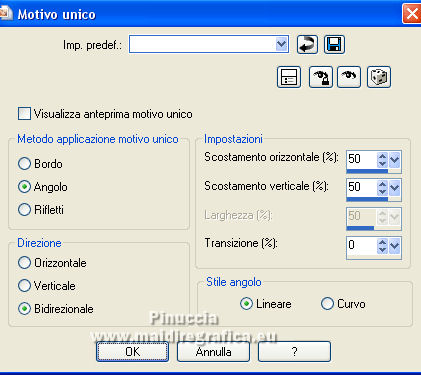 2. Effetti>Effetti di immagine>Motivo unico, con i settaggi standard.