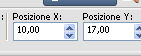 Imposta Posizione X: 10,00 e Posizione Y: 17,00.