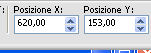 Imposta Posizione X: 620,00 e Posizione Y: 153,00.