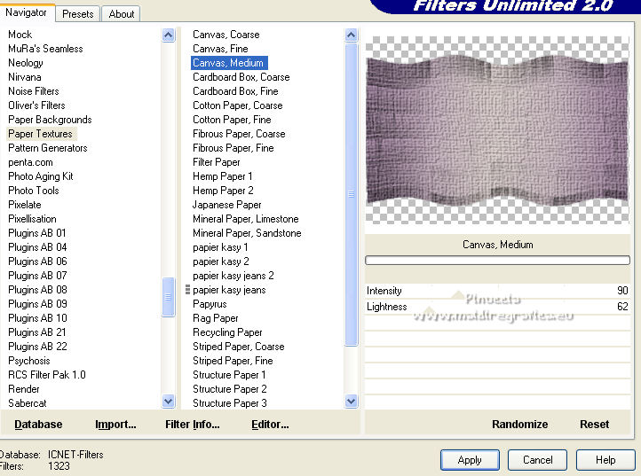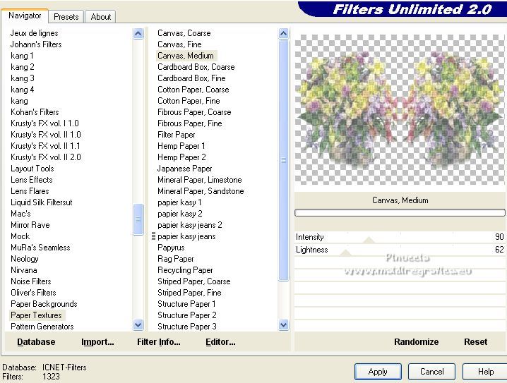 8. Effetti>Plugins>Filters Unlimited 2.0 - Paper Textures - Canvas Medium, con i settaggi standard.