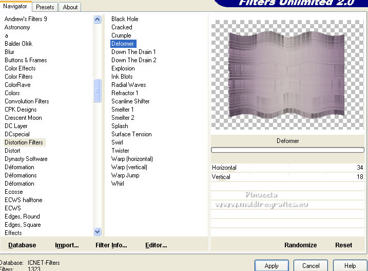 3. Effetti>Plugins>Filters Unlimited 2.0 - Distortion Filters - Deformer, con i settaggi standard.