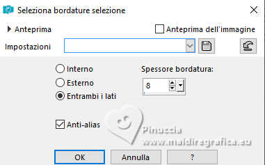 11. Selezione>Modifica>Seleziona bordature selezione, con i settaggi precedenti.