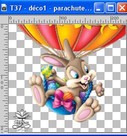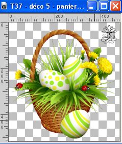 e cancella la parte del manico del cesto sul pollice del coniglio.