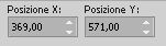 e imposta Posizione x: 369,00 e Posizione Y: 571,00.
