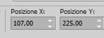 Imposta Posizione X: 107,00 e Posizione Y: 225,00.