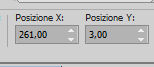 e imposta Posizione X: 261,00 e Posizione Y: 3,00.