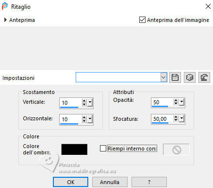 Effetti>Effetti 3D>Sfalsa ombra, con i settaggi precedenti.