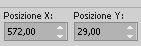 e imposta Posizione X: 572,00 e Posizione Y: 29,00.