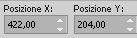 e imposta Posizione X: 422,00 e Posizione Y: 204,00.