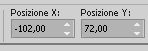 e imposta Posizione X: -102,00 e Posizione Y: 72,00.
