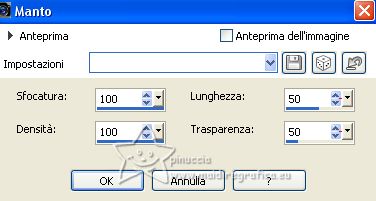 Effetti>Effetti di trama>Manto, con i settaggi precedenti.